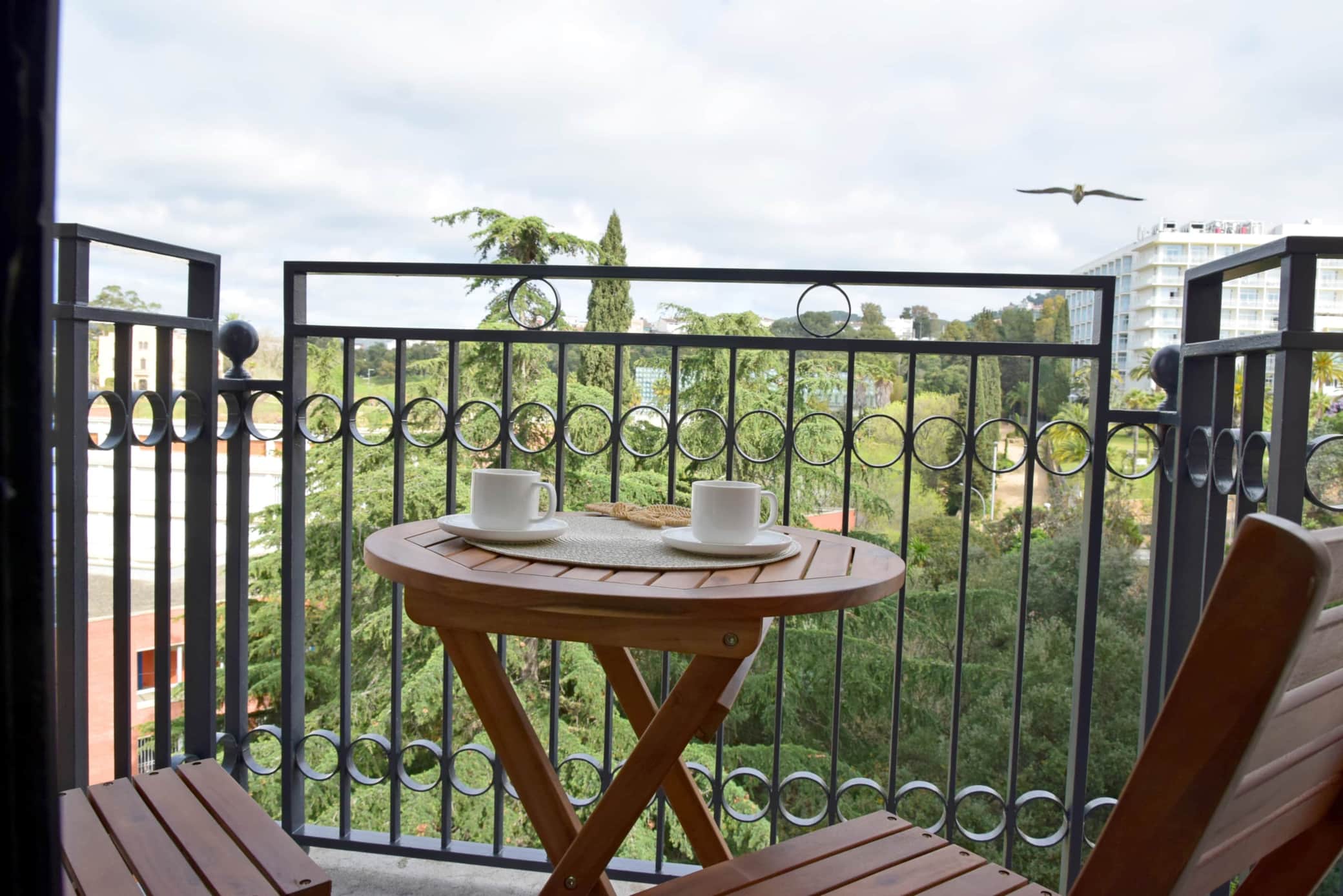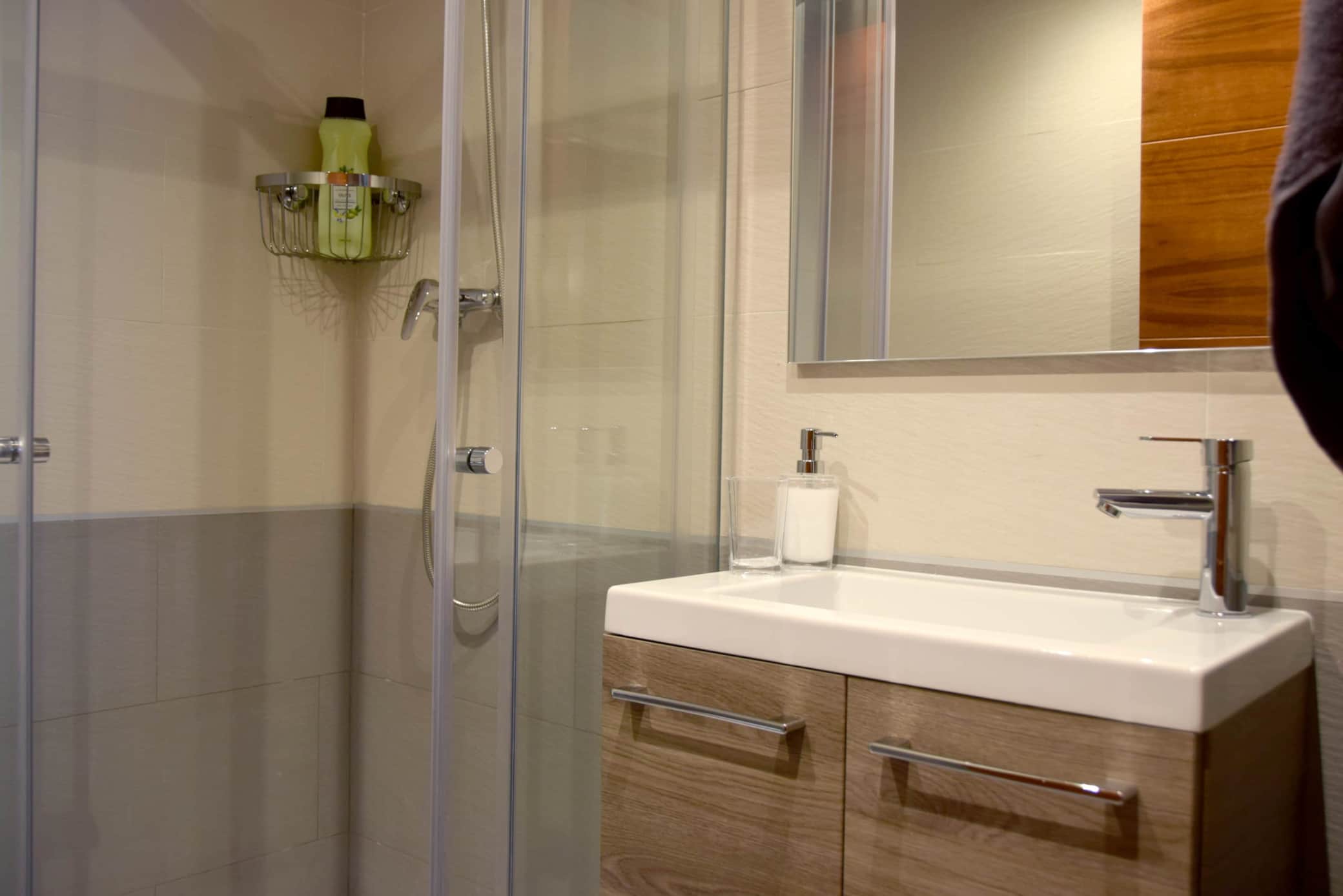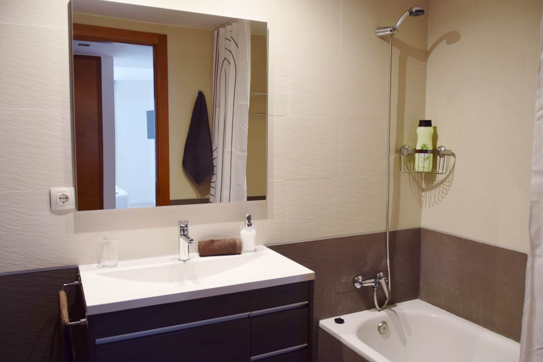 El apartamento tiene 2 dormitorios, 3 balcones, 2 baños completos, uno con ducha y otro con bañera.